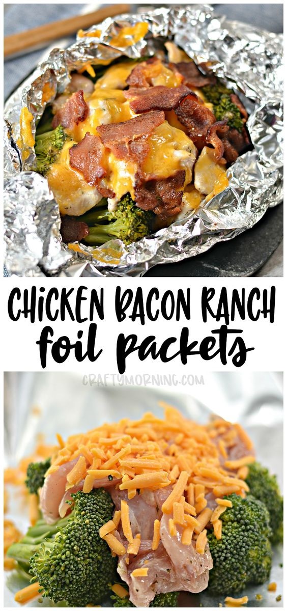 Ingredients:1 lb Boneless skinless chicken breast cut into bite sized pieces4 c Broccoli1 c Shredded cheddar cheese4 Slices cooked bacon1 Packet Ranch seasoningAnd many more.Instructions: First of all. Preheat the oven to 350 degrees. Step two, Place the chicken pieces into a mixing bowl, and top with 1 tbsp of olive oil. After it, Sprinkle ½ a package of Ranch seasoning onto the chicken, and toss to combine. Original Article: https://www.craftymorning.com/chicken-bacon-ranch-foil-packets/ Rated 4/5 based on 52 Reviews